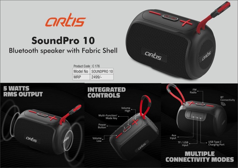 Artis Soundpro 10 Bluetooth Speaker With Fabric Shell (MRP 2499)