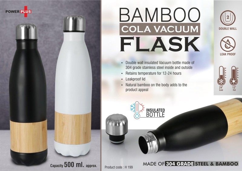 Bamboo Cola Vacuum Flask | Capacity 500 Ml Approx | Made Of 304 Grade Steel & Bamboo