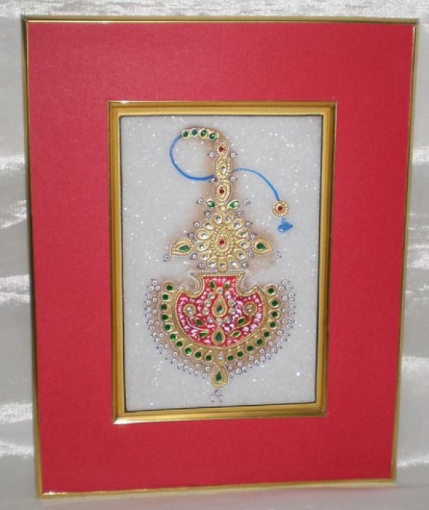Ethnic Painting in marble with jewellery design. The size is 9” by 7”. Very good craftsmanship with real gold leaf and colours .