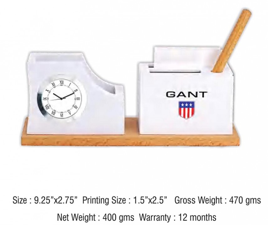 • Wooden Desktop with Table Clock